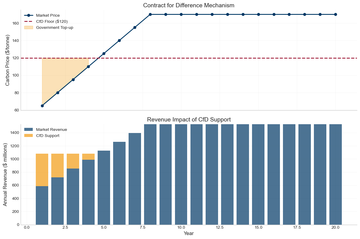 CfD design is critical: The repayment mechanism prevents windfall profits but must be carefully calibrated